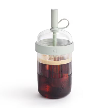 Materiales: Cuerpo de plástico sin BPA, tapa y banda de silicona para la pajita, y pajita de plástico.