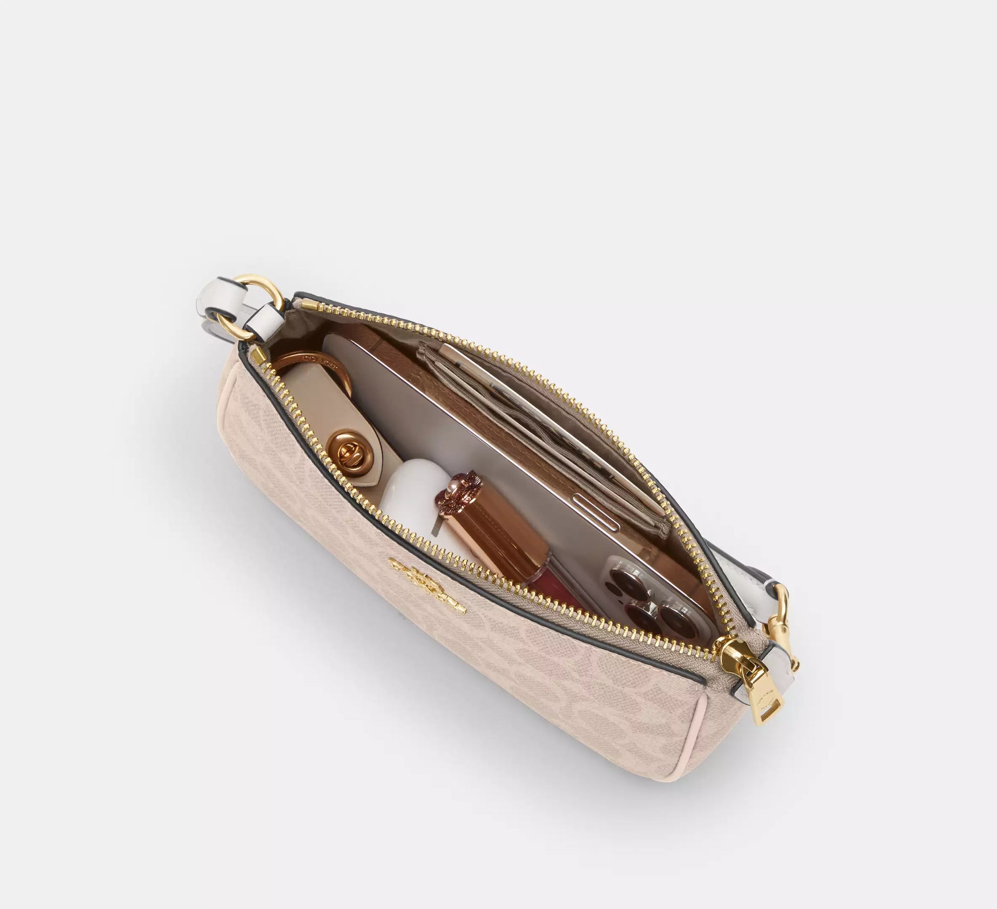 El Nolita 19 es tu mini bolso de hombro ideal. Fabricado en lona revestida Signature, es resistente y compacto. Con espacio suficiente para tus llaves, tarjetero y iPhone (hasta el Pro Max de 16 pulgadas), este mini bolso de hombro para mujer te permite tener tus objetos esenciales a mano. Con dos ranuras para tarjetas de crédito para mayor organización, el Nolita se puede personalizar con colgantes o una correa diferente para darle un toque personal. Llévalo al hombro para completar tu look o como bolso de mano para tus salidas. Sea cual sea la ocasión, este mini bolso de hombro de lona complementará tu look.