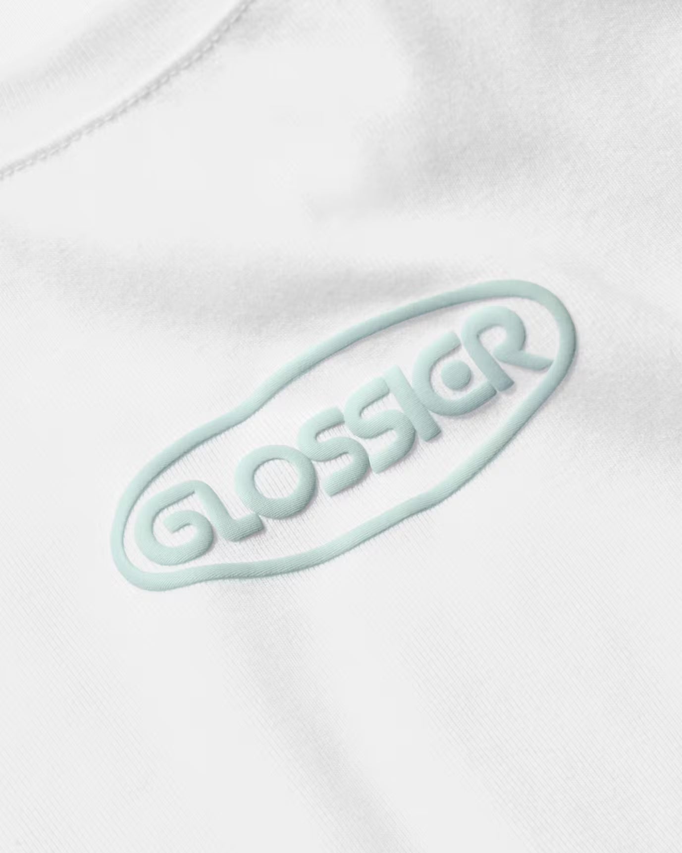 Una camiseta corta y cómoda para bebé, perfecta para los meses más cálidos. Con un logo de Glossier bicolor y abultado, es suave, transpirable y perfecta para todas tus aventuras de verano.
