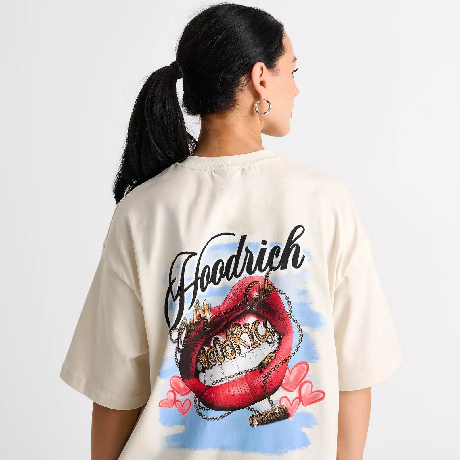 Brilla con luz propia ante tus enemigos con esta camiseta extragrande Hoodrich Grillz para mujer. Confeccionada en un tejido de algodón increíblemente suave, esta camiseta urbana holgada luce hombros caídos, la marca Hoodrich estilo grafiti con aerógrafo y gráficos de joyas doradas en la boca estampados en el pecho y la espalda.