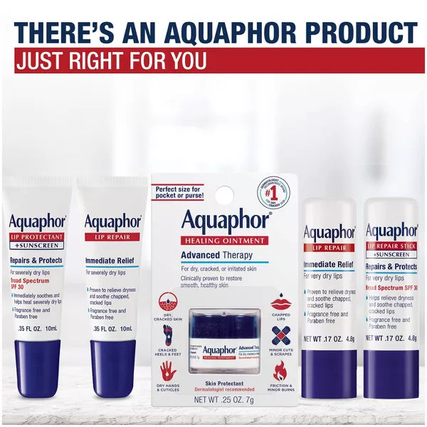 Encuentra la hidratación duradera de la marca de cuidado labial número 1 recomendada por dermatólogos con el ungüento reparador labial Aquaphor. Aquaphor Lip Repair alivia al instante la sequedad y suaviza los labios muy agrietados. Específicamente formulado para labios sensibles y muy secos y agrietados,