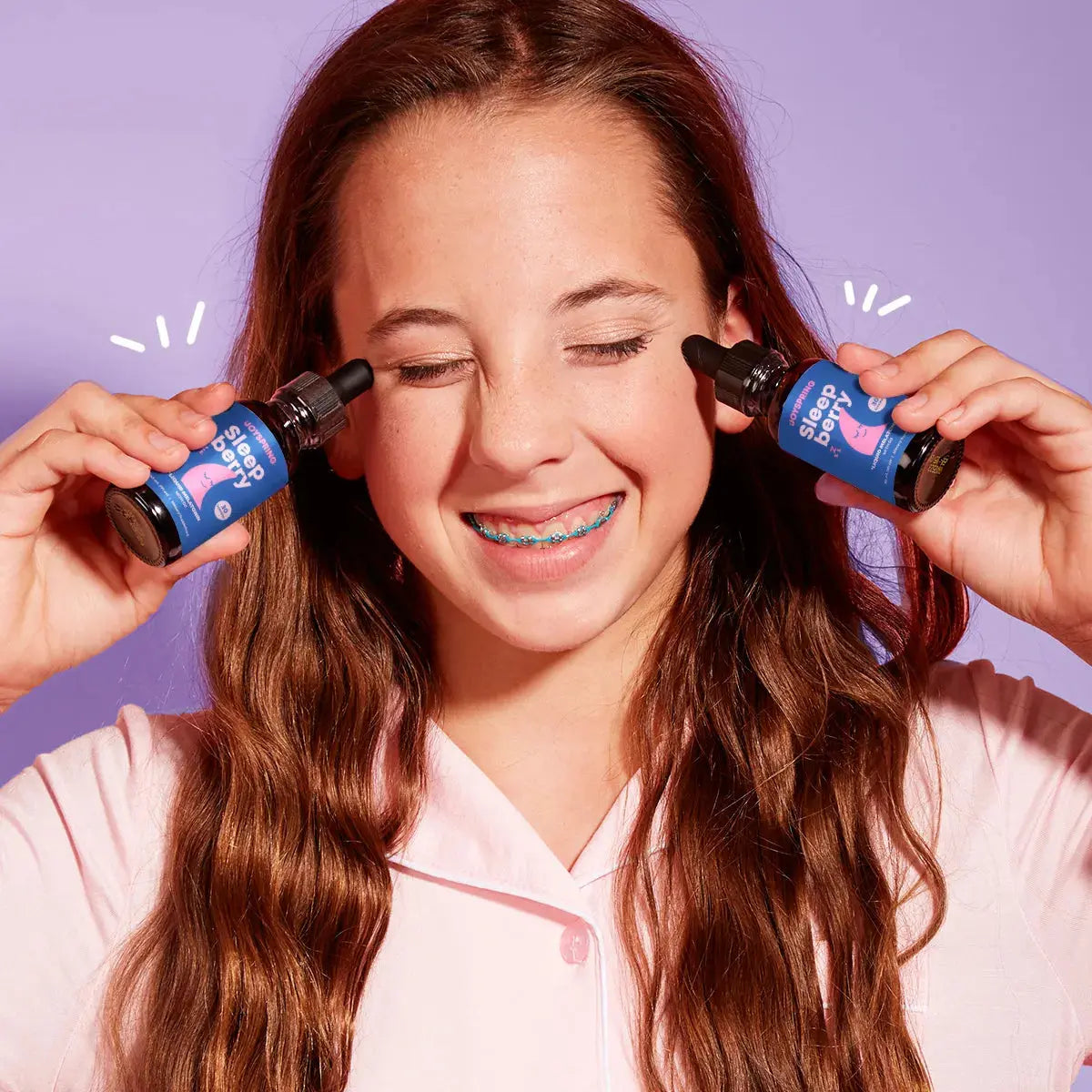 SleepBerry es un suplemento líquido de melatonina para niños, diseñado para apoyar la relajación y los hábitos de sueño saludables con ingredientes naturales como L-Teanina, saúco y vitamina D.