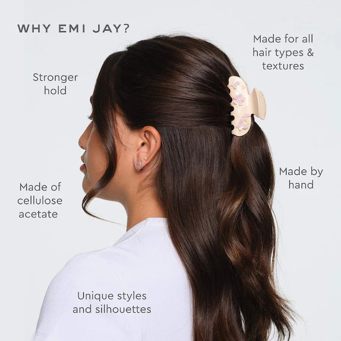 Un pequeño y dulce clip de garra hecho con delicadas piedras colocadas a mano para acentuar cualquier look, perfecto para un moño bajo o un estilo semi recogido.