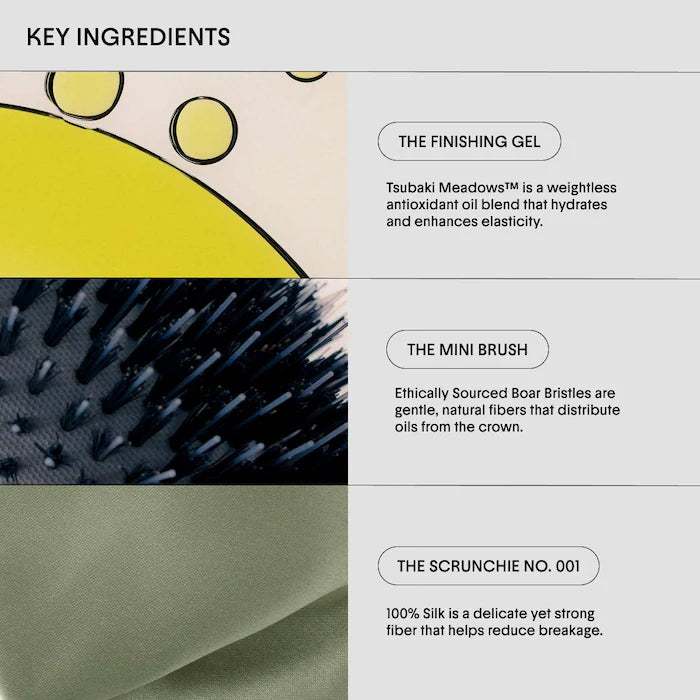 Un trío para el peinado hacia atrás perfecto, diseñado para desenredar, controlar el frizz, agregar brillo y mantener las hebras seguras.