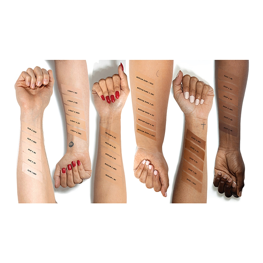 Una base en polvo suave como la mantequilla, modulable, de cobertura media a completa con una fórmula multiusos, un acabado mate suave y hasta 12 horas de duración.